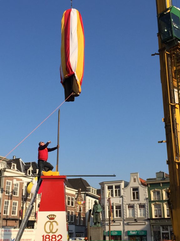 DEN BOSCH – Vrijdagmiddag is om 15:00 uur Knillis op zijn sokkel op de markt gezet. Het was het laatste puzzelstukje in de magische omtovering van Den Bosch naar Oeteldonk. Het is en blijft een bijzonder moment, waar vele Oeteldonkers op af komen. Eerst de opbouw van de sokkel, later Knillis. Afgedekt, dat wel, want hij wordt zondag pas na de aankomst van Prins Amadeiro XXV onthuld.